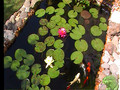 Koi pond with water lilies.