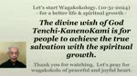 The divine wish of God Tenchi-KanenoKami is for people to achieve the true salvation with the spiritual growth.