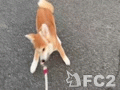 秋田犬ふじ 運動紐くわえてウロウロ散歩