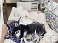 ストーブの前でぬくぬくするあられ&なんか